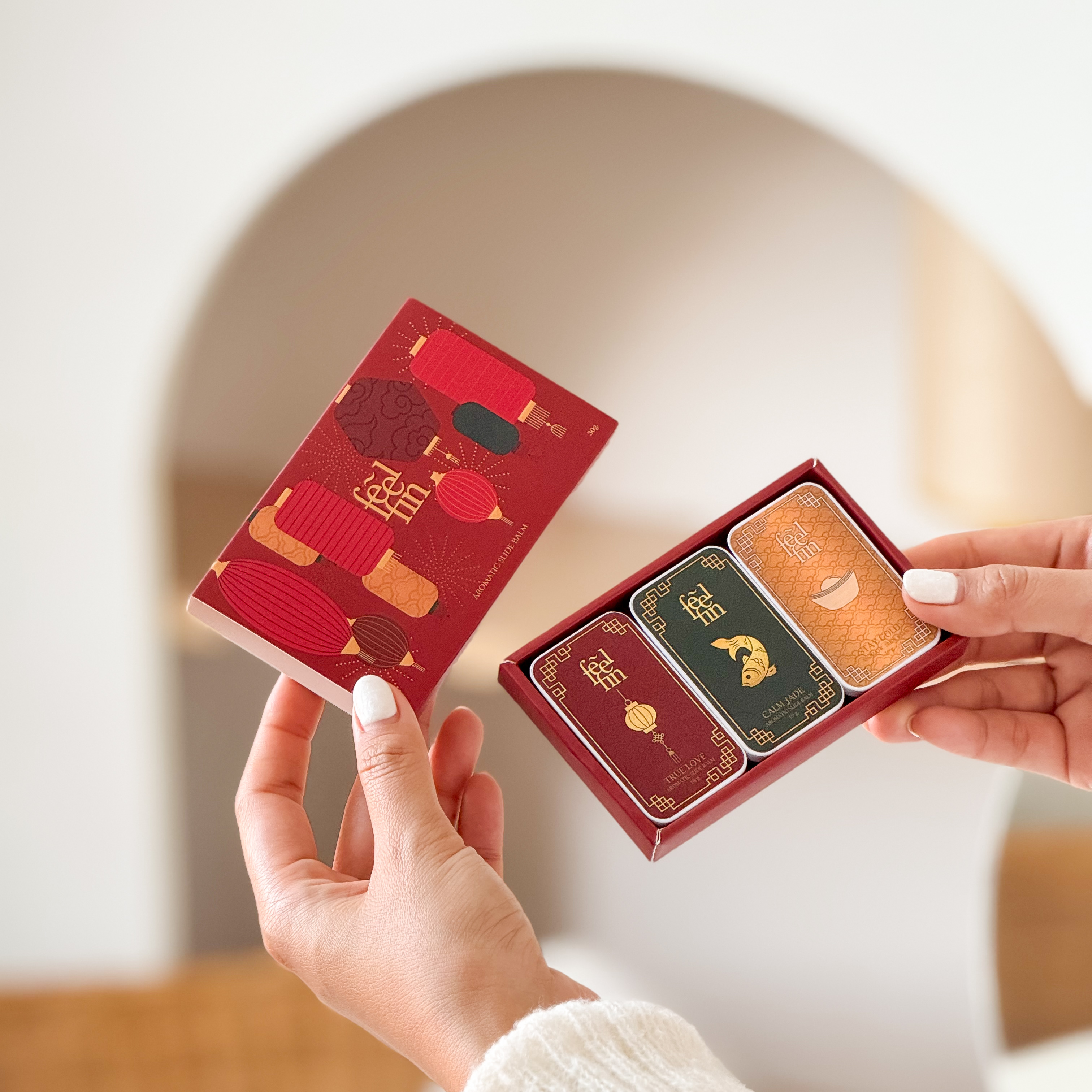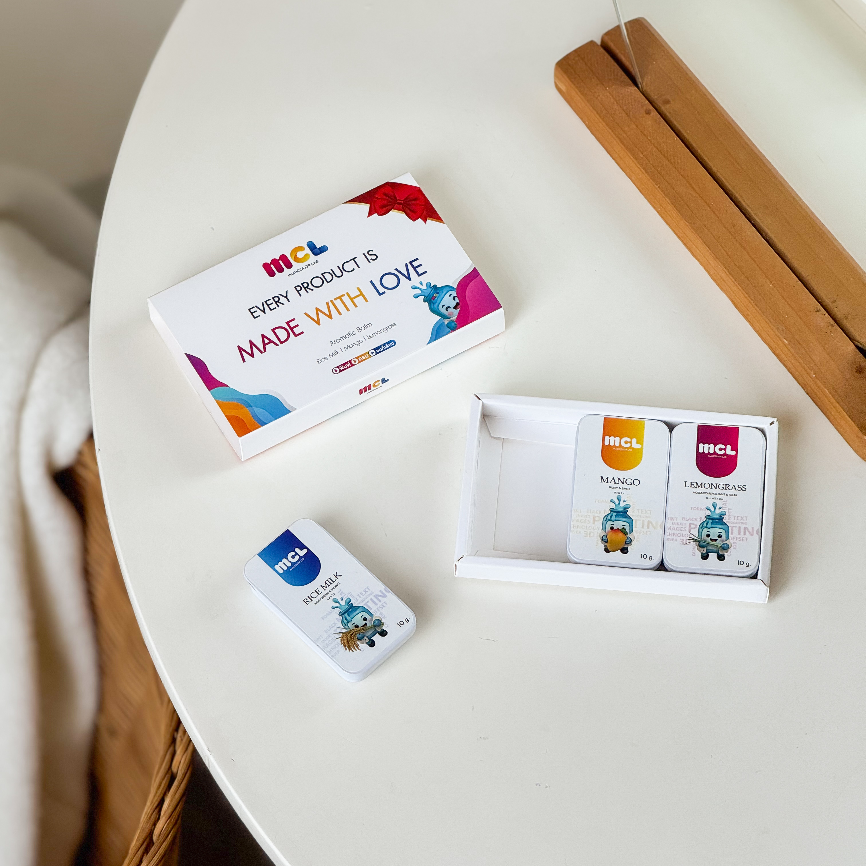 แพคเกจกล่อง Boxset บรรจุ 3 ตลับ, สามารถเปลี่ยนสติ๊กเกอร์หน้าตลับ, เปลี่ยนลายกล่อง, เปลี่ยนการ์ด