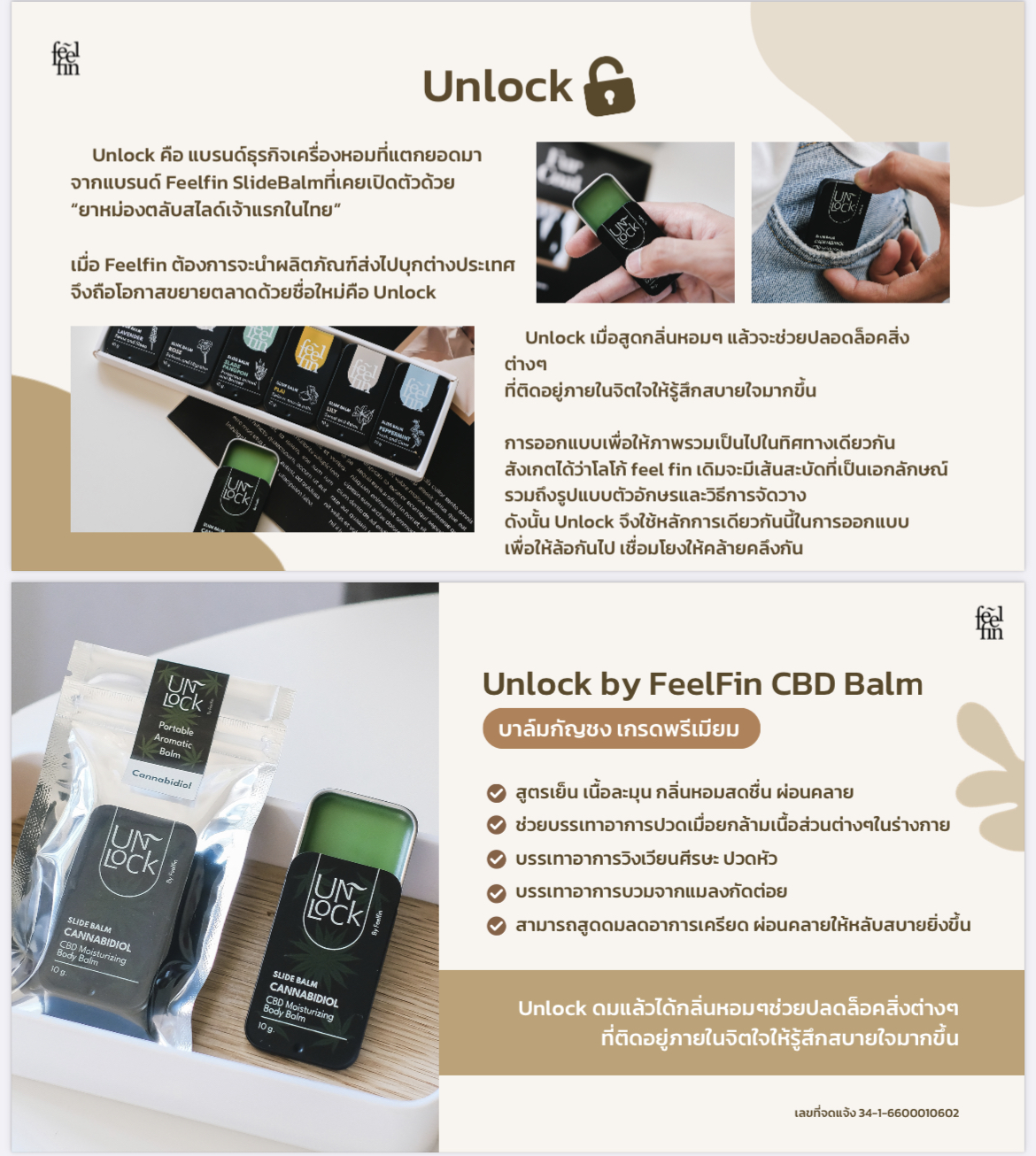Unlock คือ แบรนด์ธุรกิจเครื่องหอมที่แตกยอดมาจากแบรนด์ Feelfin Slide Balm ที่เคยเปิดตัวด้วยยาหม่องตลับไลด์เจ้าแรกในไทย เรียกได้ว่าUnlock เป็นแบรนด์ลูกของFeelfinนั่นเอง